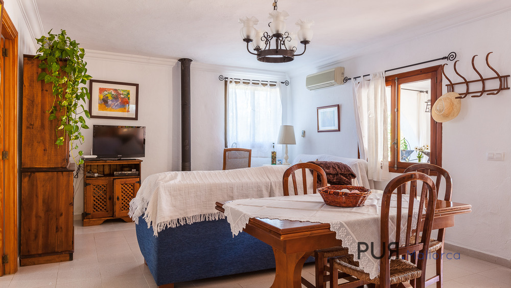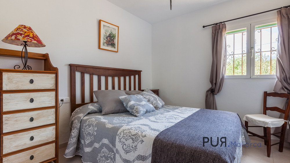 The house has 3 rooms, 2 bathrooms, air conditioning, private pool, various terraces, garden, solarium, barbecue, fireplace and fruit trees. In addition, the finca offers a spectacular view of the mountains.