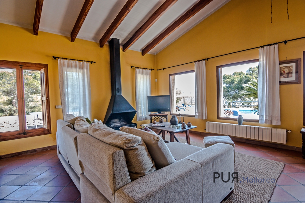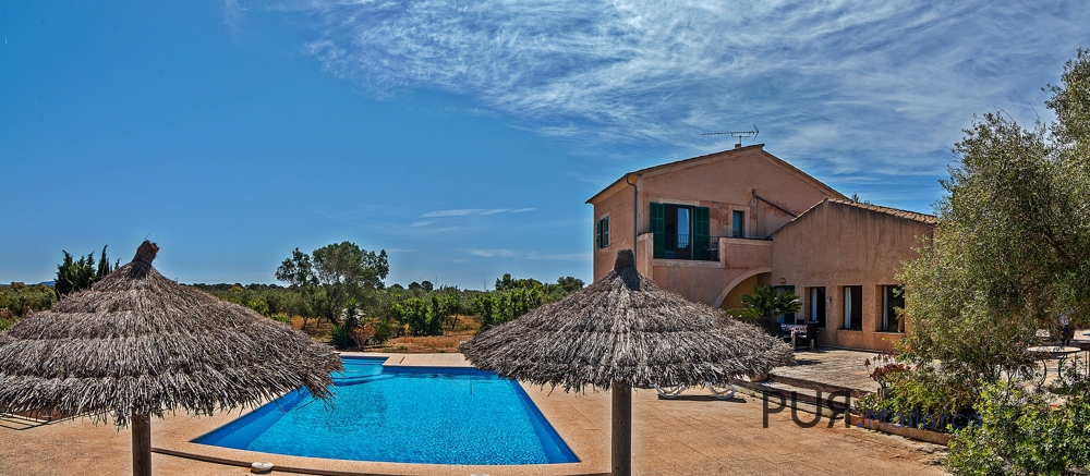 This villa is situated on a plot of 700,000 m² between Colonia de Sant Jordi and Campos. Since it is located on a hill, it has wonderful panoramic views of mountains and the neighboring towns. The location is perfect as it is very quiet and has rich vegetation.