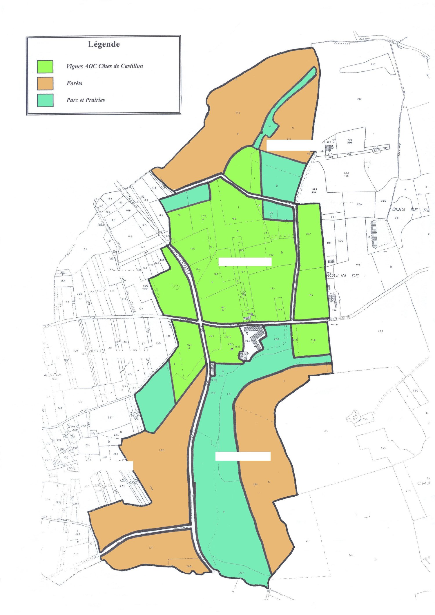 - Vineyard : 20 ha (Density 5700 plants/ha) - Forests & Pastures : 45 ha