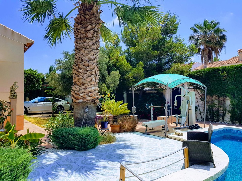 This beautiful villa is in excellent condition.The house has three bedrooms and two bathrooms on one floor.The living area is 140 m2 and the plot is 500 m2.There is a beautiful panoramic terrace around the living room, with a large and easy to maintain plot, you can enjoy a refreshing bath all year round in the private swimming pool.There are shops, restaurants and cafés, health centre, language centre, 4 star La Laguna Hotel with spa, its own water park, La Marquesa golf club, tennis courts, gyms, the municipal cultural centre with library.Only 4 km away are the best beaches on the Costa Blanca of Guardamar and La Marina.Alicante International Airport is 30 km away.Very close to Ciudad Quesada is the National Park of Salt Lagoons with splendid views of the Mediterranean Sea.