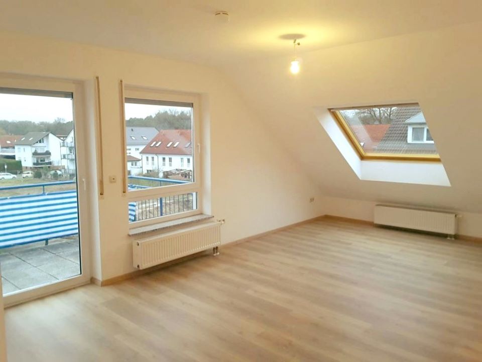 The kitchen is equipped with a modern fitted kitchen (light wood fronts and dark worktop) with all electrical appliances, including dishwasher (defective). Spacious, bright living room with large south-west-facing balcony. The bedroom is on the open gallery. The lovely open-gabled, daylight bathroom is tiled in white and has a bath and shower. The two other rooms are well usable as a children's / study or guest room. All living rooms are fully equipped with vinyl floor (2017). White plastic insulated windows with shutters. The roof windows have wooden frames. Gas-fired central heating. Telephone connection. DVB-T reception.