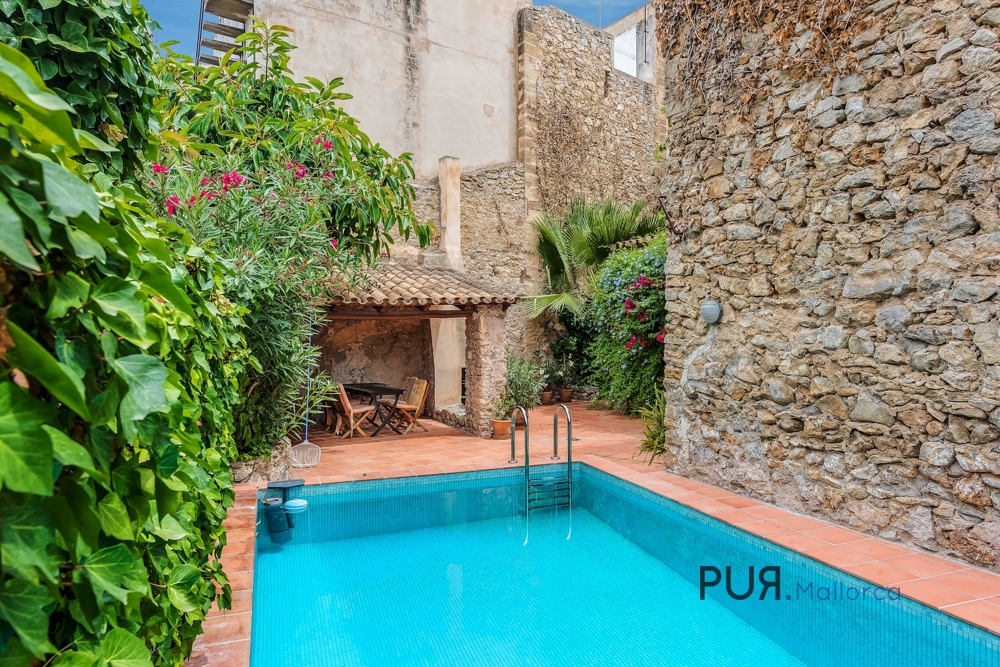 Centrally located townhouse over three floors with 200 m² living space, patio (patio) with porch and pool.