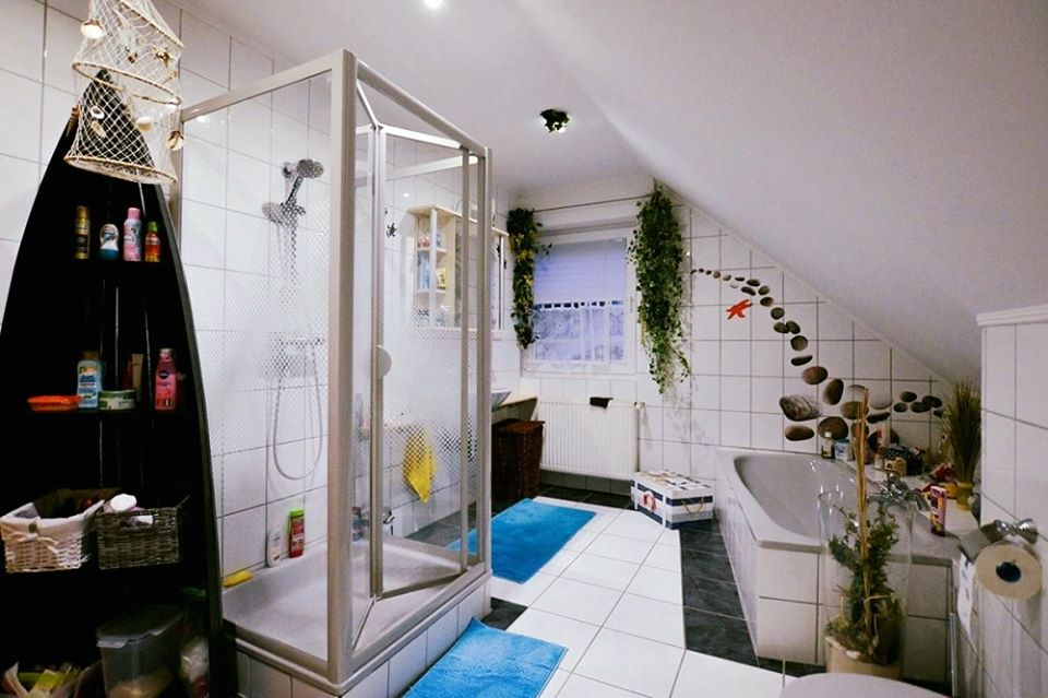 When entering the property you will be welcomed at home by the warm tones of the ceilings and wall design. The light tiled floor shows its easiest to care for. The bright beech doors of the adjoining rooms and the wide steel staircase with massive beech steps immediately transmit a feeling of well-being to the visitor. The spacious hall area on the ground floor leads to the guest toilet, the utility room with Budeus gas central heating, the kitchen, a bedroom and the light-flooded living room with terrace exit. Large patio doors create a light-flooded living room. Thanks to the existing parquet flooring and an 8 kW stove with a Mediterranean look, the overall impression will be more at home.