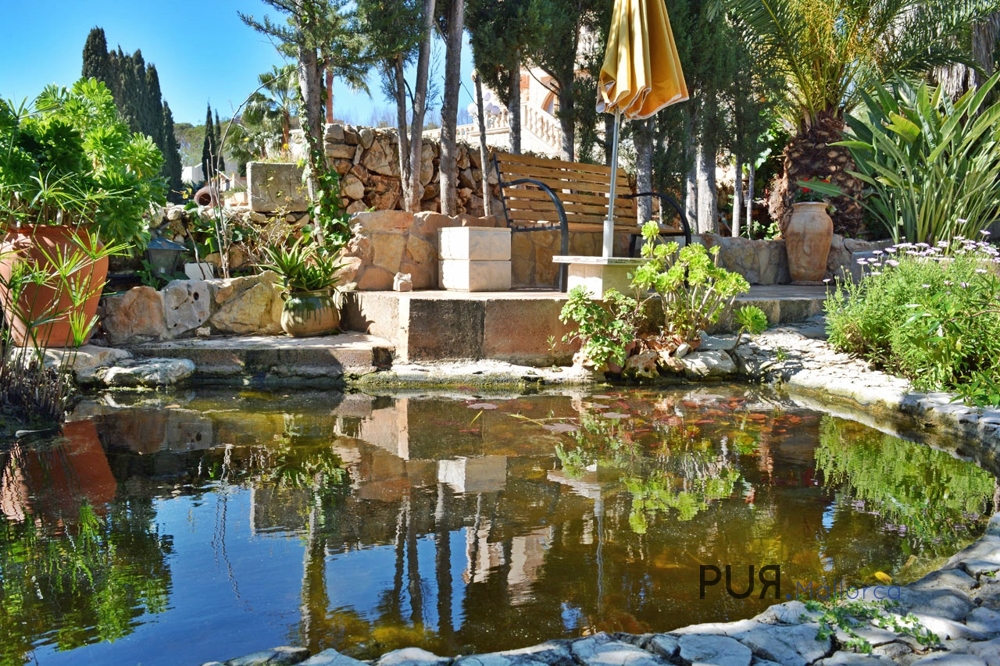 Attractive, spacious, well-kept property with garden, pool, water lily pond, sun terrace and BBQ house and fantastic sea views.