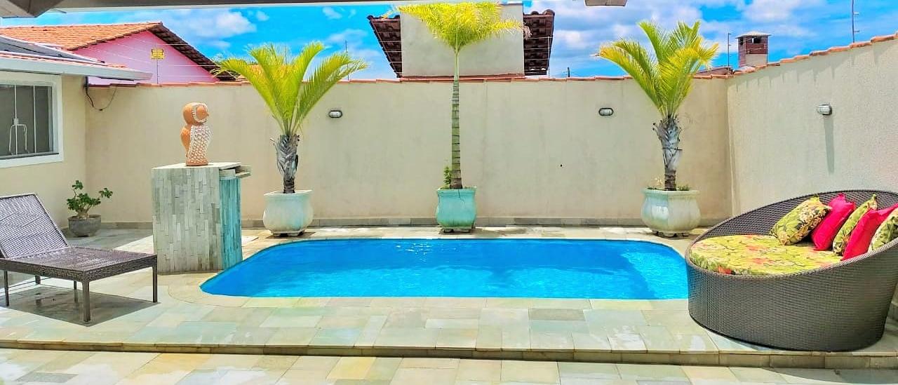 In addition, it is a large house, divided into three bedrooms, all with air conditioning, one suite, living room, full kitchen, large living room fully equipped with large cable TV, retractable sofa, and air conditioning. -conditioned.